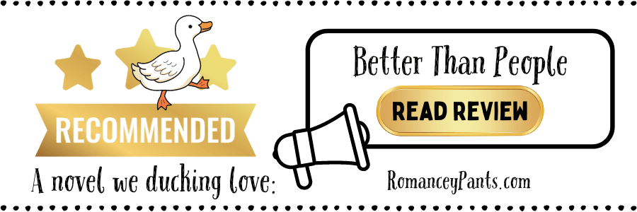 Duck: And when things fall to pieces for Declan, I’m really ducking rooting for him. He gets tangled in his own pondweed, and that’s never easy—especially for those of us who struggle with anxiety. You can tell Ripper adores zir characters and that’s what makes The Love Study both moving and delightful. By turns, it’s also super-ducking HILARIOUS. I’ve never heard Star laugh so often while listening to an audiobook.