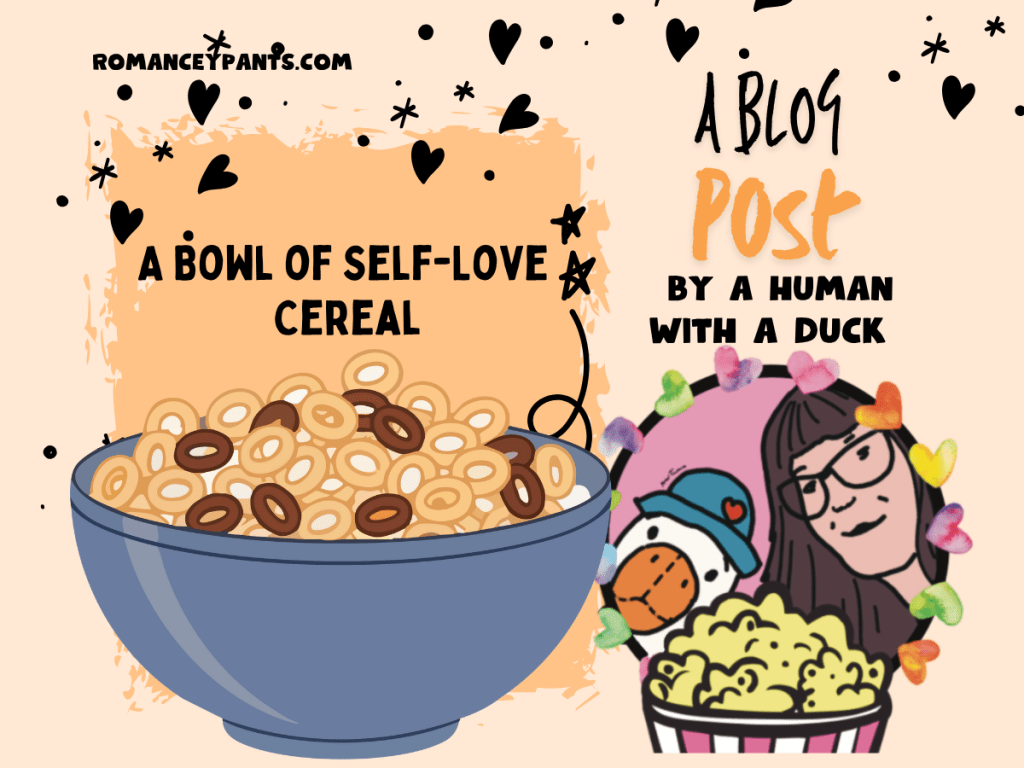 Wise, our Duck, isn’t he? Perhaps, when we deliberately create a pleasant moment for ourselves—like pouring a bowl of self-love cereal— it’s the ultimate source of self-romance. Anais Nin, one of my favorite-ever authors, wrote, “We don’t see things as they are, we see things as we are.” Perhaps those moments when we romance ourselves, if only for a minute at time, can change how we see the next moment in our lives—and the one after that.
